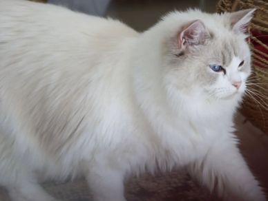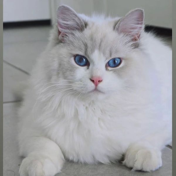 The one and only earth angel, miss Jia. She is by far our sweetest female ragdoll with such a timid and submissive personality. She is an instant flipper and will lye on her side or back right next you to wait for belly rubs. She will hop into your lap like a little puppy and lick your fingers and give you tiny nibbles of affections. She’s a perfect blue lynx bicolor and she is a CHUNKY girl. She is our sweetest female ragdoll heart walking and we know you’ll love her too,